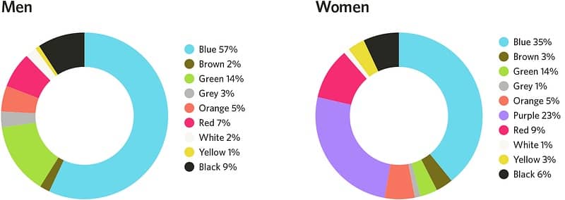 Ну и далее немного менее «глобальной» информации. Для 57% мужчин и 35% женщин любимым цветом является синий.