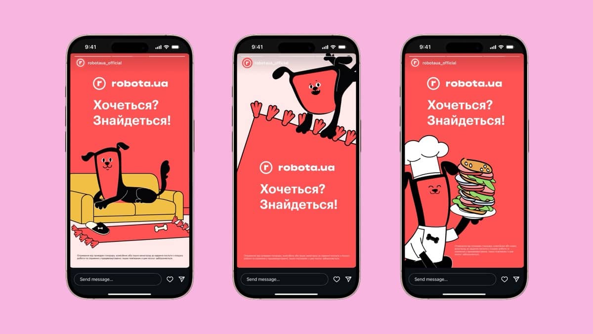 robota.ua — сервис, который помогает людям искать работу. Поэтому неудивительно, что их талисманом стал Пес-Роботошукес, персонаж, который энергично находит кучу вакансий на любой вкус.
