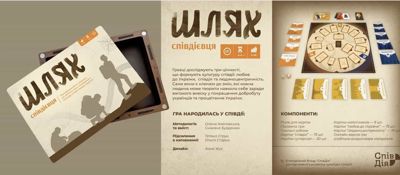 Гра «Шлях співдієвця» – командна трансформаційна гра, яка через метафору подорожі допомагає зануритись у цінності та сенси. Це можливість віднайти опори, що ведуть до гармонії із собою, іншими людьми та Україною. Усе задля того, щоб ставати амбасадорами культури співдії та поширювати її за межами фонду.